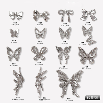 Заводская цена, подвеска для ногтей, 10 шт. в упаковке, серебристые 3D, мульти-стильные, бабочки, банты, металлические алмазные аксессуары, наклейки для ногтей